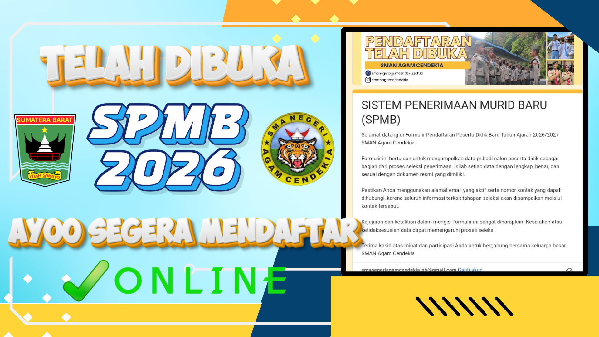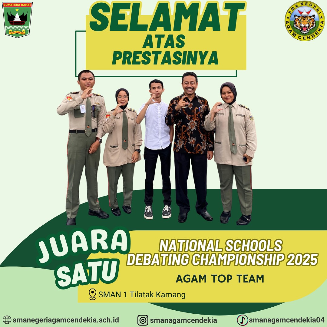 PENGUMUMAN PEMBUKAAN PENDAFTARAN MURID BARU TAHUN 2026SMA NEGERI AGAM CENDEKIA SMA Negeri Agam Cendekia dengan bangga mengumumkan dibukanya pendaftaran Penerimaan Murid Baru Tahun Pelajaran...